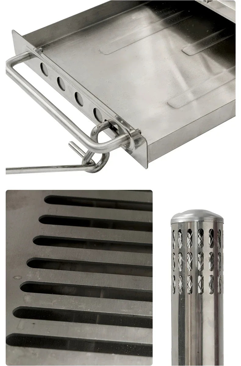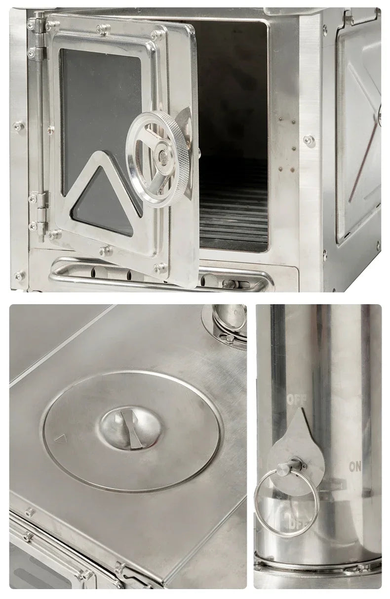 6. The wood stove is integrated into one, and the chimney can be stored in the stove for more portability.The chimney has a switch to adjust the continuousburning time.