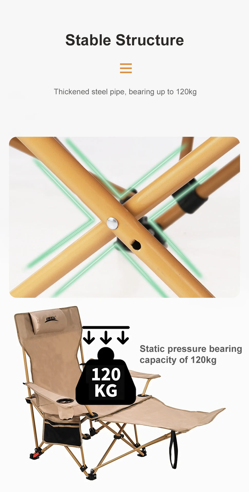 [ 2-IN-1 CAMPING CHAIR] The footrest of the reclining camping chair is retractable and can be used as both a lightweight camping chair and a recliner. The backrest can be adjusted at 4 different angles, making it suitable for various scenarios such as the beach, lawn, camping, and parties, etc.