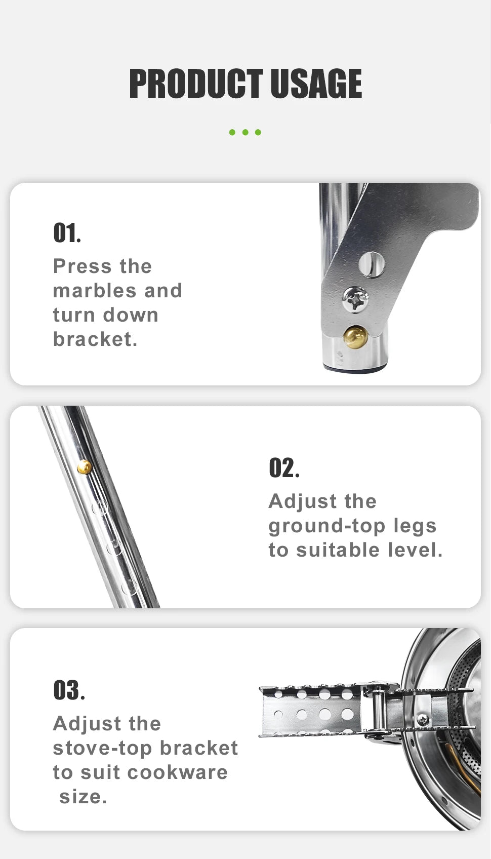 [ Adjustable Stand ] With its ingenious five-level adjustable stand, this stove is perfect for any outdoor setting. Whether you're on uneven ground or a flat surface, it provides a stable setup for group meals, enhancing your outdoor dining experience. Plus, its reversible gas canister ensures a stable and intense flame, meeting the needs of larger camping groups with ease.