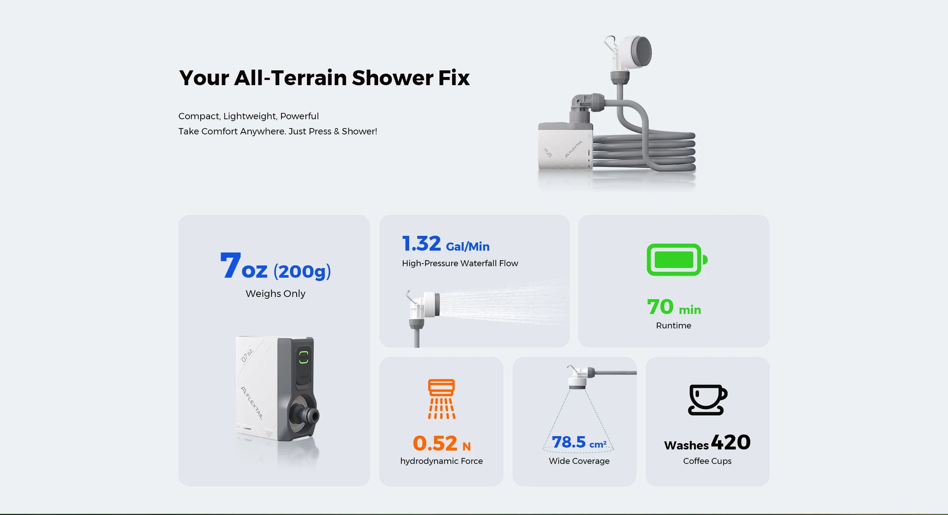 FLEXTAILGEAR Outdoor Camping TINY SHOWER IPX7 Waterproof Portable Electric Shower Pump for Outdoor and Home Cleaning