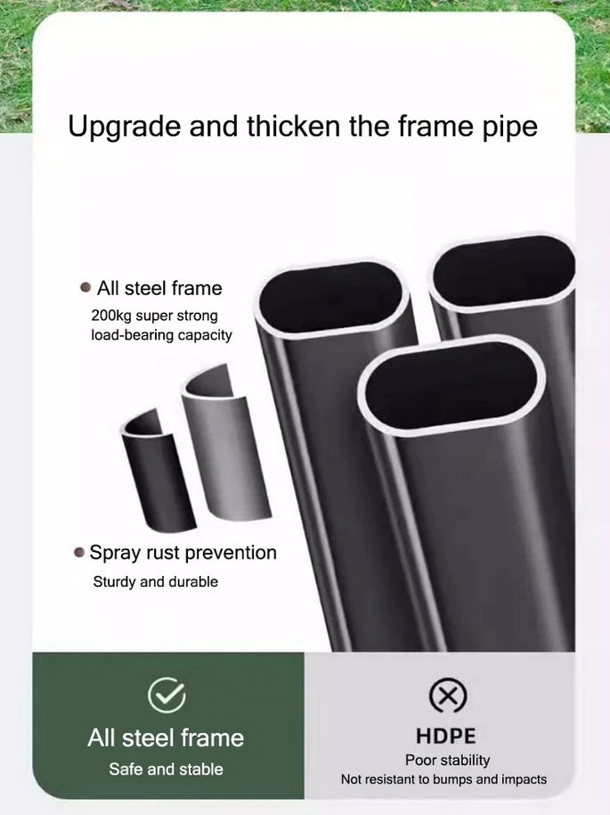 2. Made with a reinforced steel frame and high-density Oxford fabric, it effortlessly handles rough terrain while remaining light and portable.