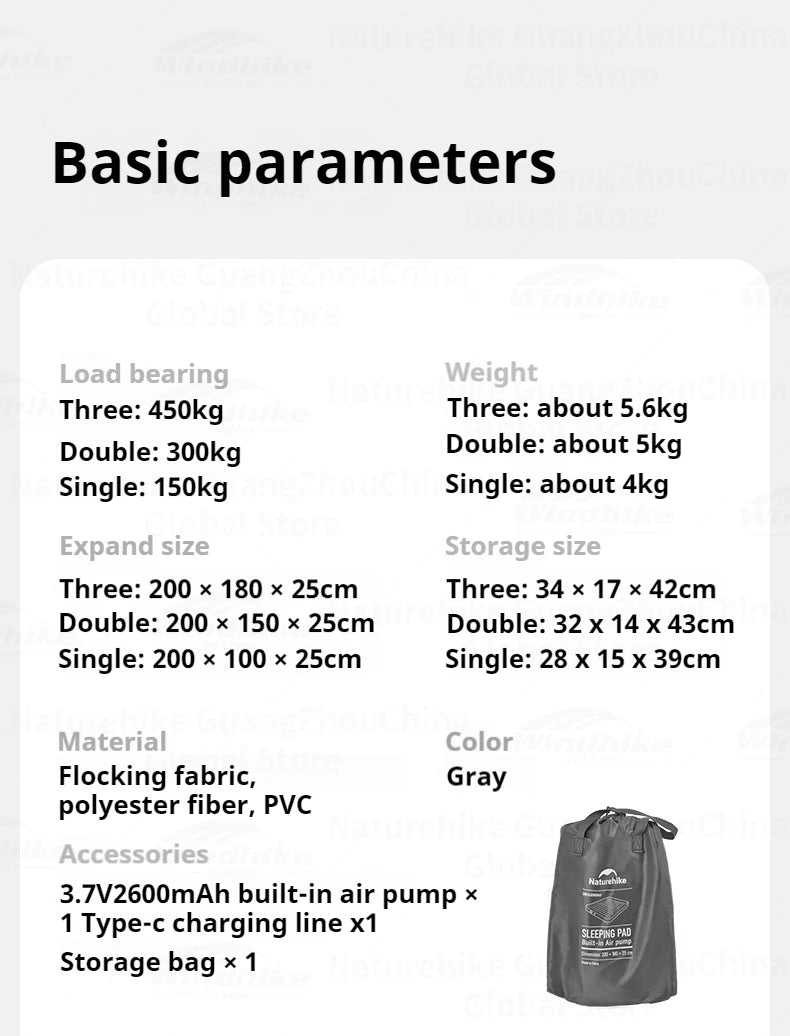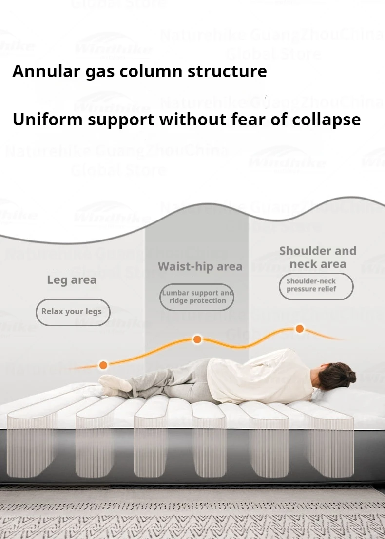 Naturehike Air Mattress Built-in Pump with Pillow Inflatable Thicken Bed Camping Outdoor Luxury 1-3 Person PVC Sleeping Pad 25CM
