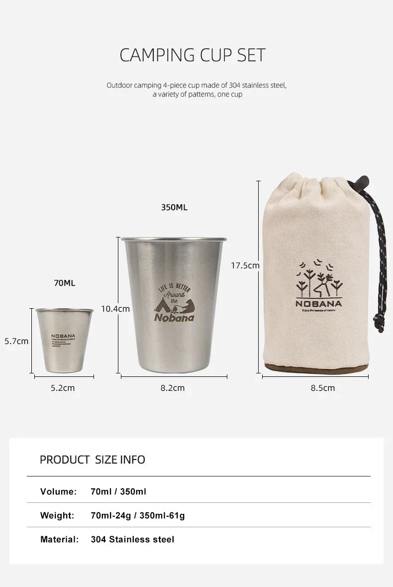 Outdoor 304 Stainless Steel Cup Set Camping Cup 4/6/8PCS Camping Portable Water Cup Travel Coffee Cup Picnic Barbecue Beer Cup
