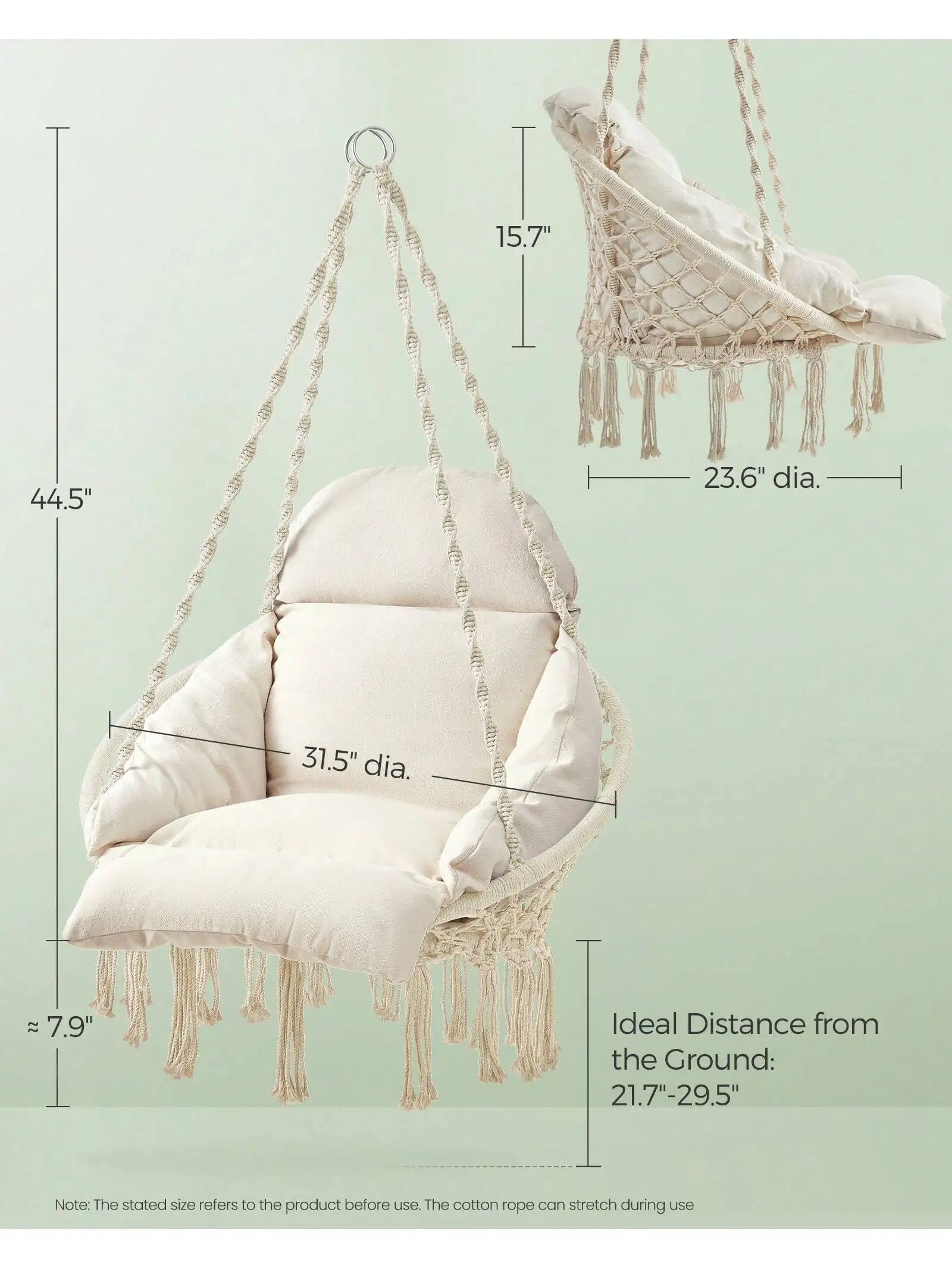 SONGMICS Hanging Chair, Hammock Chair with Large, Thick Cushion, Boho Swing Chair for Bedroom, Patio, Balcony, Garden